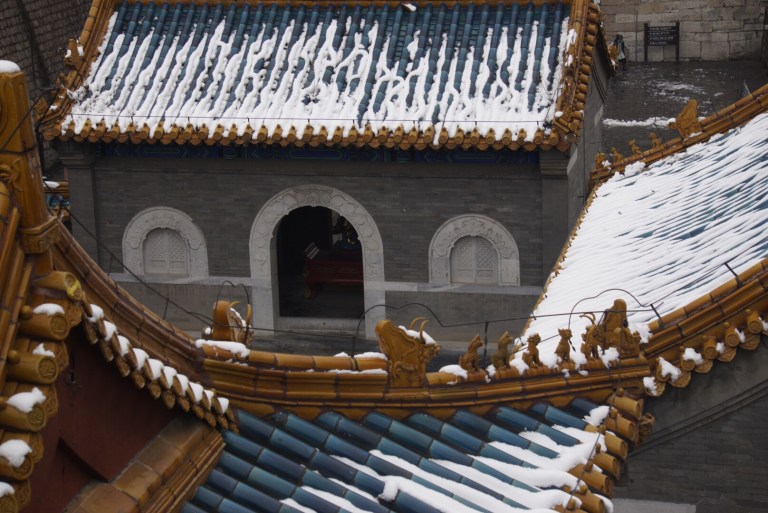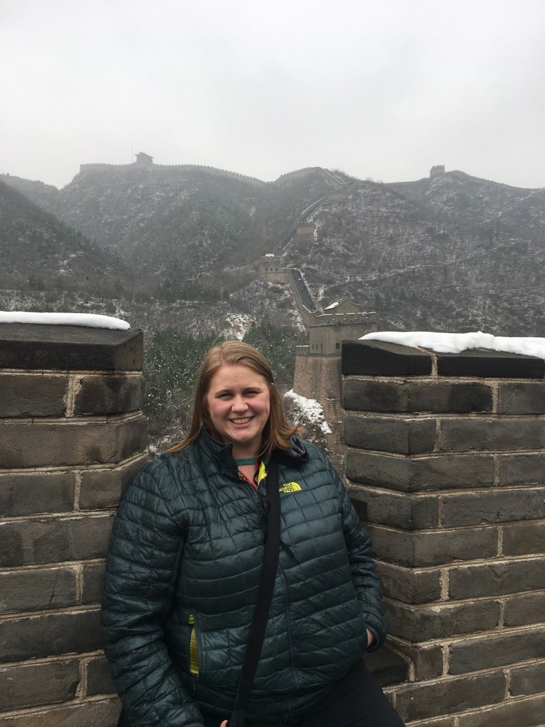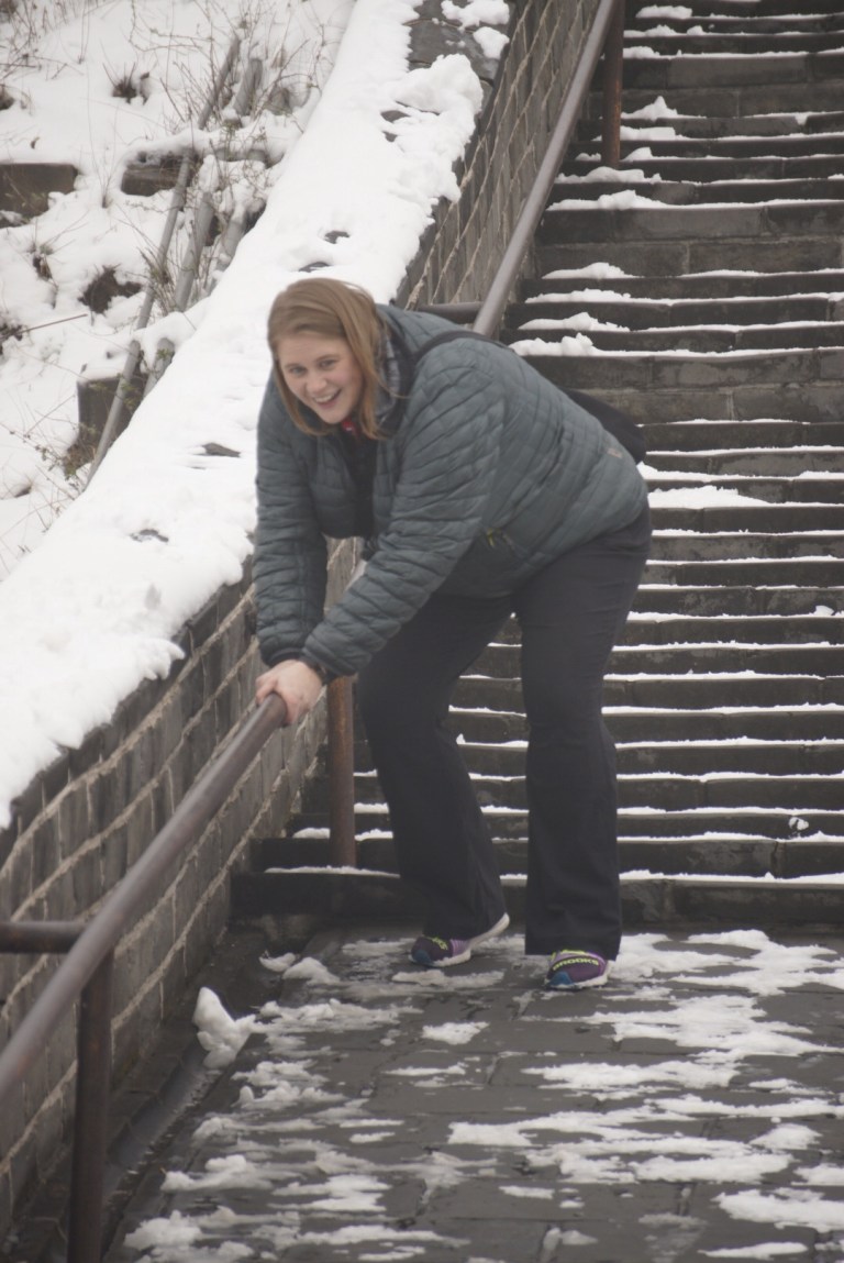 We arrived at The Great Wall Of China yesterday afternoon. In stepping off the bus our Chinese guide Frank, obviously not his actual name, pointed right and said “you can take that path. It would be the easier of the two. It goes to that tower that you can see, but not any further. (turns out it was also a gift shop:) We were only 15km from Beijing so this is a more touristy part of the wall) Or you can go left.” That path looked like it went straight up. Naturally Kelli and I went left. Out of 39 other people in our tour we were the only ones to choose that path. What a great choice. Yes it went straight up, and I haven’t mentioned yet that it snowed the night before so those steps were also snowy, but the views were great and there were very few people! It also helped that those ancient Chinese builders installed a metal handrail for us to use. They could have made it taller than knee height however!